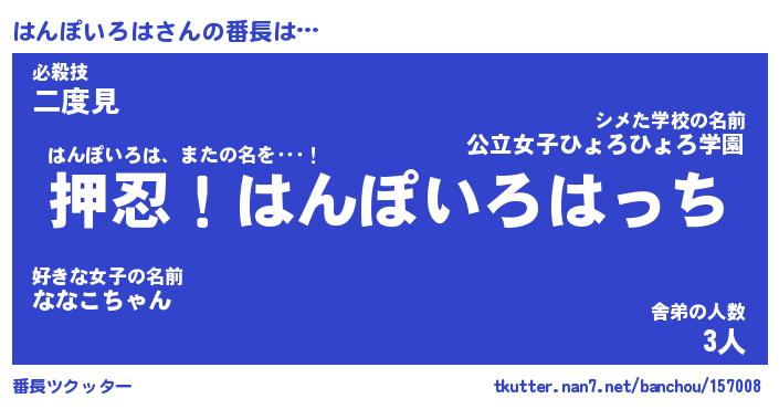 | ヘコむあだ名 | 『はんもー』『なまこ酢』『はんっ子』 |