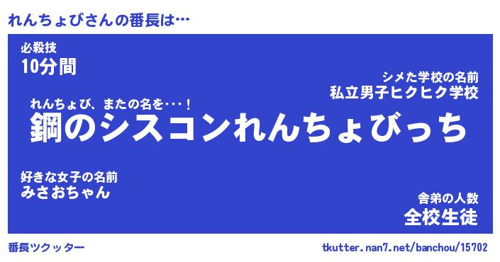 | ヒーロー風カッコイイあだ名 | 『スーパーレンチョビ』『魔戒騎士レン』 |