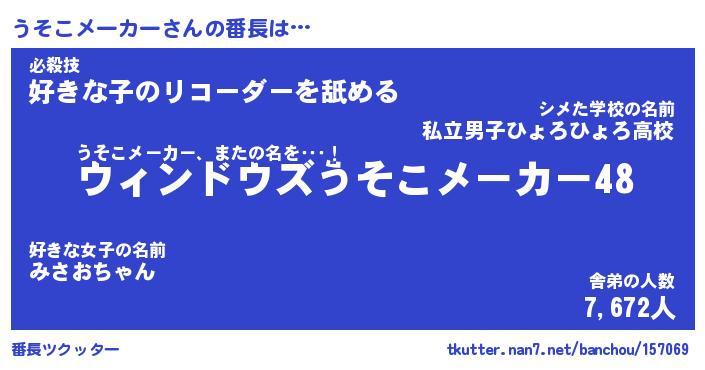 | 伝説のあだ名 | 『伝説のスナイパーうそこメーカー』 |