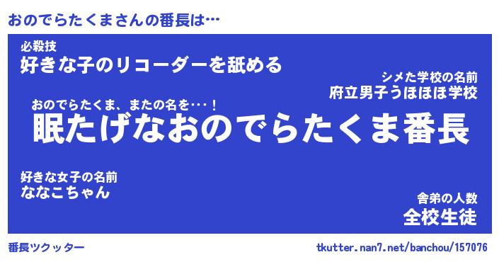 | 意味不明あだ名 | 『ペロリンおのでらたくま』 |