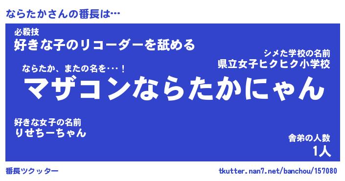 | 意味不明あだ名 | 『ペロリンならたか』『永久保存ならたか』 |