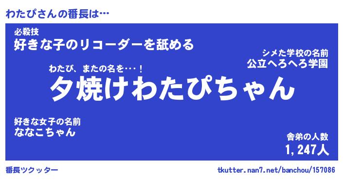 | 肩書あだ名 | 『わたぴ御曹司』『わたぴ国家主席』 |