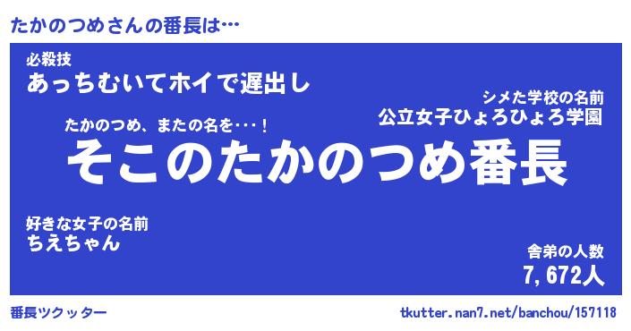 | 男性向けラノベタイトル風あだ名 | 『たかのつめの憂鬱』 |