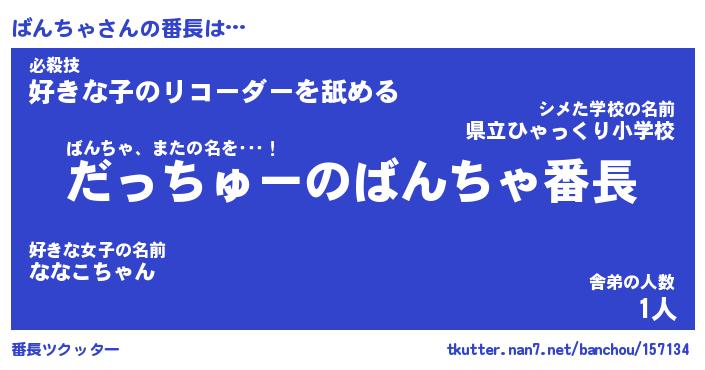 | 意味不明あだ名 | 『ペロリンばんちゃ』『永久保存ばんちゃ』 |