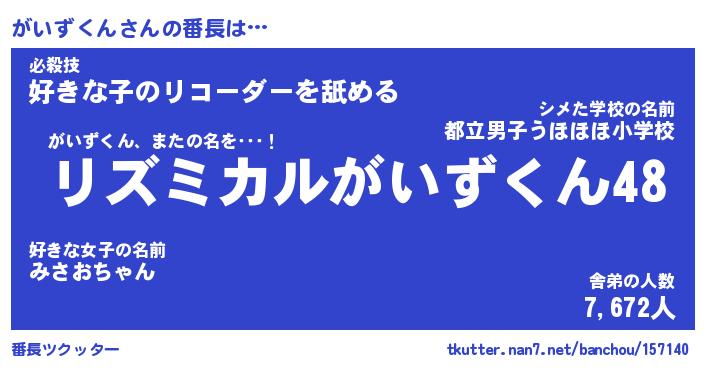| 伝説のあだ名 | 『伝説のスナイパーがいずくん』 |