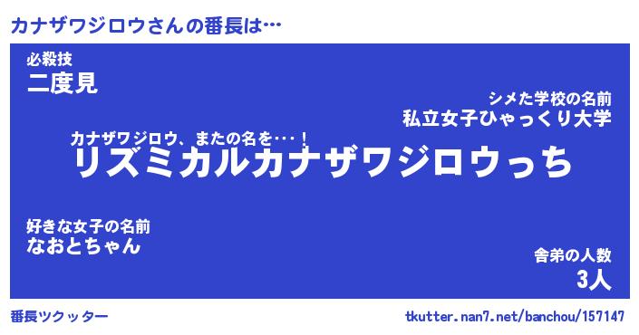 | 肩書あだ名 | 『カナザワジロウ店長』 |