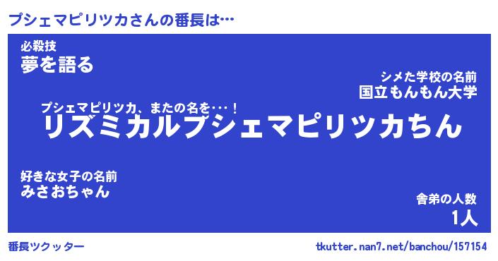 | 可愛いあだ名 | 『プんプん』『プシちー』 |