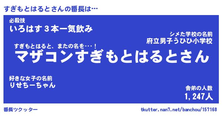 | 伝説のあだ名 | 『封印されしスナイパーすぎもとはると』 |