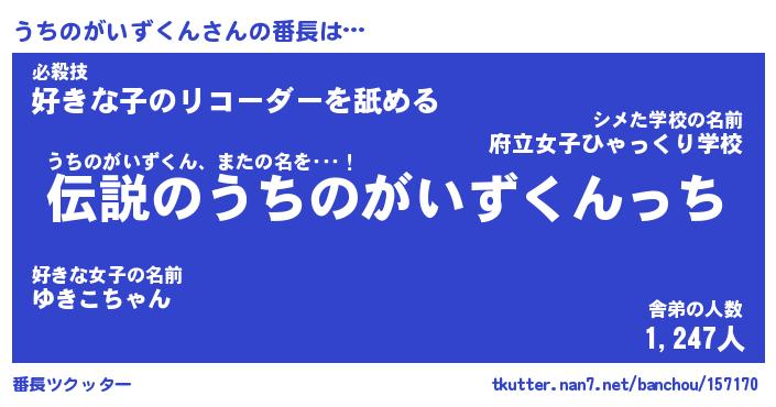 | 伝説のあだ名 | 『伝説の竜騎士うちのがいずくん』 |