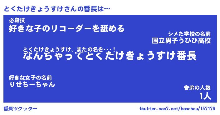 | ヒーロー風カッコイイあだ名 | 『スーパートクタケキョウスケ』 |