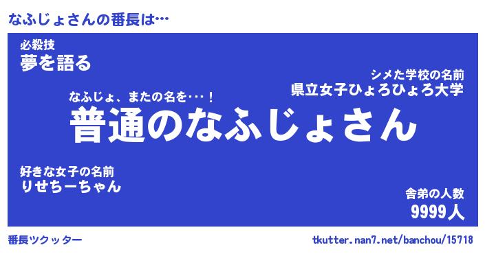 | 意味不明あだ名 | 『ペロリンなふじょ』『永久保存なふじょ』 |