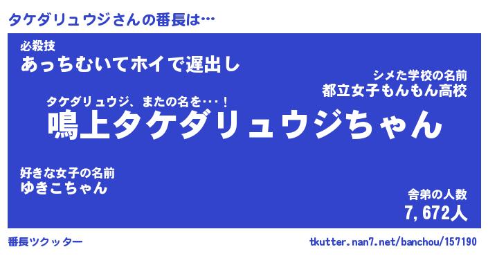 | 伝説のあだ名 | 『封印されしスナイパータケダリュウジ』 |