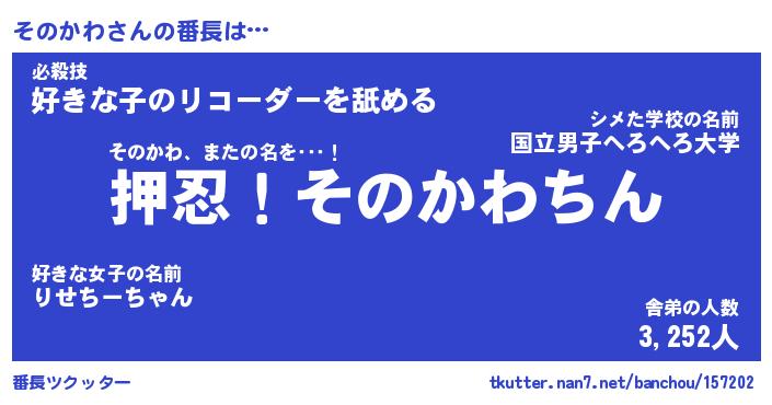 | 意味不明あだ名 | 『ペロリンそのかわ』『永久保存そのかわ』 |
