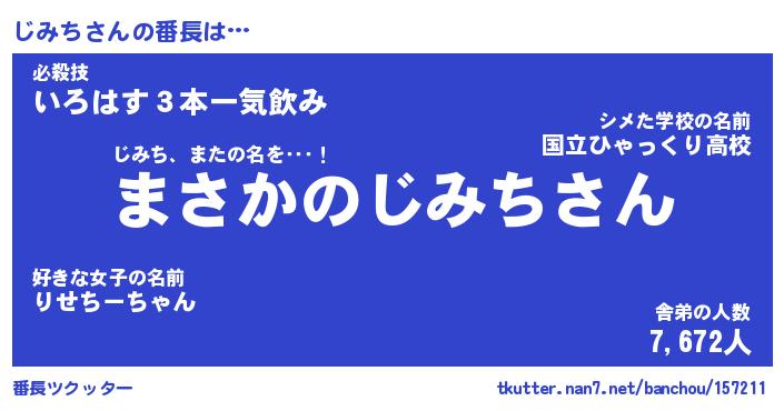 | ピコ太郎風あだ名 | 『ジコ史郎』『ピジ二郎』『ジミ二郎』 |