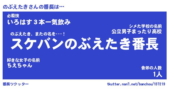 | 肩書あだ名 | 『のぶえたきCEO』『のぶえたき総理大臣』 |