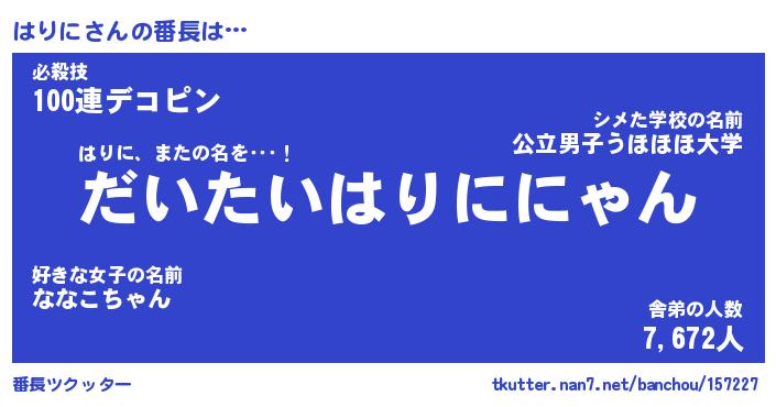 | ヘコむあだ名 | 『はりにー』『つくし』『はり太郎』 |