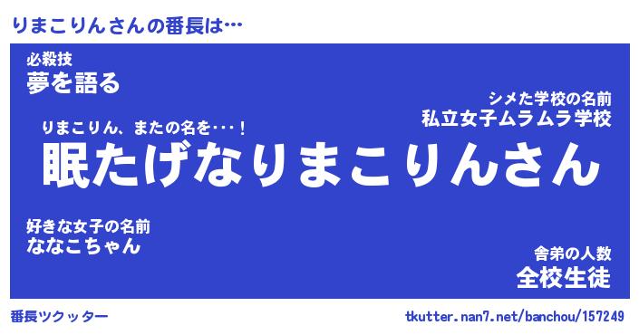 | 肩書あだ名 | 『りまこりん社長令嬢』『りまこりん団長』 |