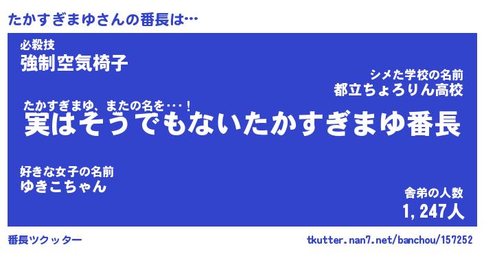 | 肩書あだ名 | 『たかすぎまゆ御曹司』 |