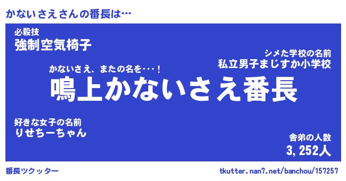 | 肩書あだ名 | 『かないさえ店長』『かないさえ総理大臣』 |