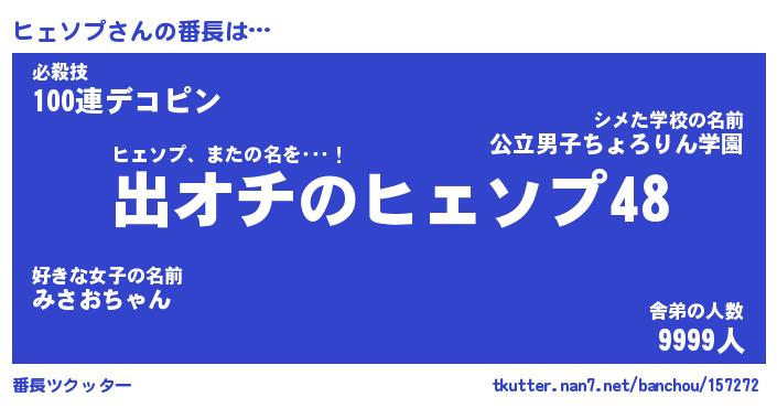 | ファンタジー風あだ名 | 『ヒェフェル』『エターナルヒェソプー』 |