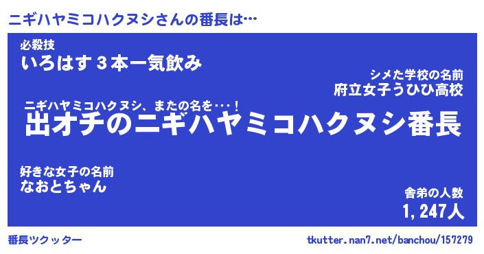 | 肩書あだ名 | 『ニギハヤミコハクヌシ社長』 |
