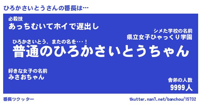 | ポケモン風あだ名 | 『ヒロチュウ』『ヒロカダネ』 |