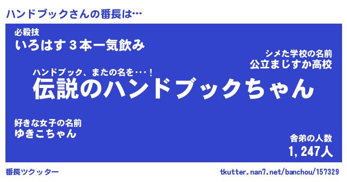 | ポケモン風あだ名 | 『ハンチュウ』『ハンドダネ』 |
