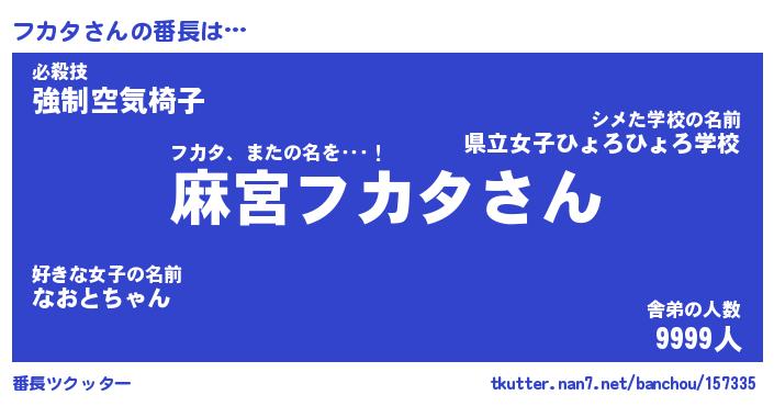 | ヒーロー風カッコイイあだ名 | 『スーパーフカタ』『ウルトラフカタマン』 |