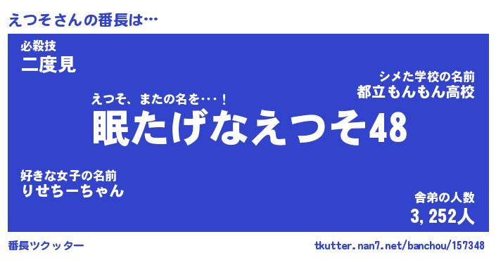 | ヘコむあだ名 | 『えつにー』『豆乳』『えつ太郎』 |