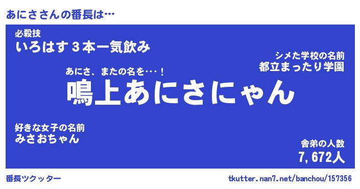 | 意味不明あだ名 | 『ペロリンあにさ』『あにさフォーエバー』 |