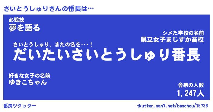 | 恥ずかしいあだ名 | 『プリティーさいとうしゅり』『さいちん』 |