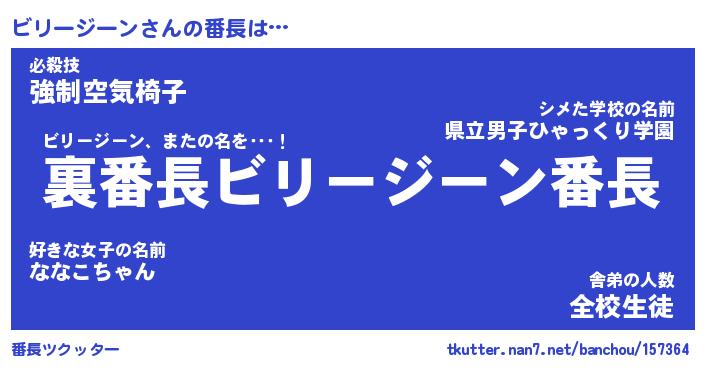 | 肩書あだ名 | 『ビリージーンCEO』『ビリージーン班長』 |