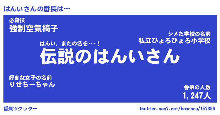 | ポケモン風あだ名 | 『ハンチュウ』『ハンイダネ』 |