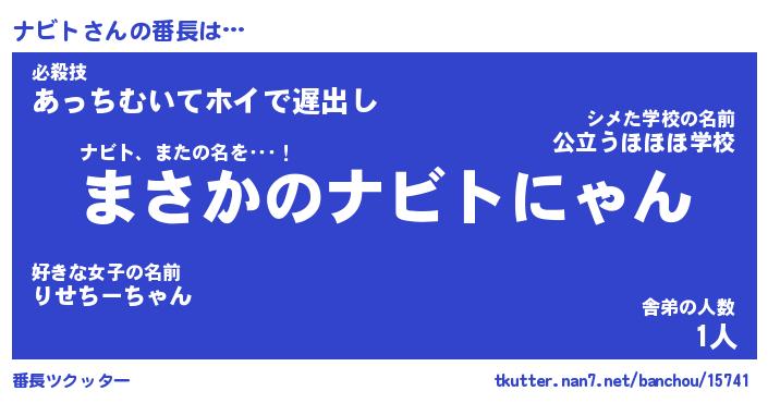 | ヒーロー風カッコイイあだ名 | 『スーパーナビト』『ウルトラナビトマン』 |