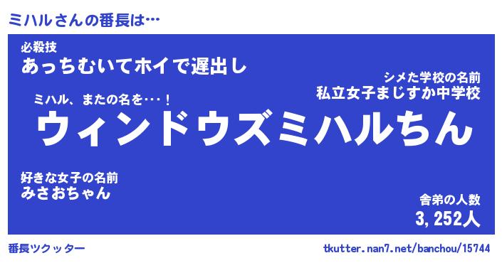 | ファンタジー風あだ名 | 『ミハフェル』『エターナルミハルー』 |