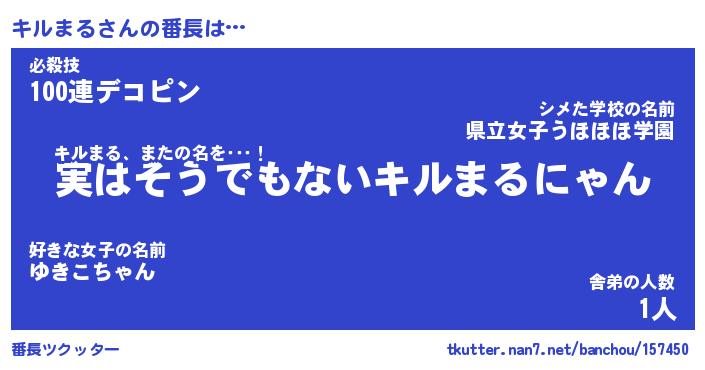 | ヒーロー風カッコイイあだ名 | 『スーパーキルマル』『黄金騎士キル』 |