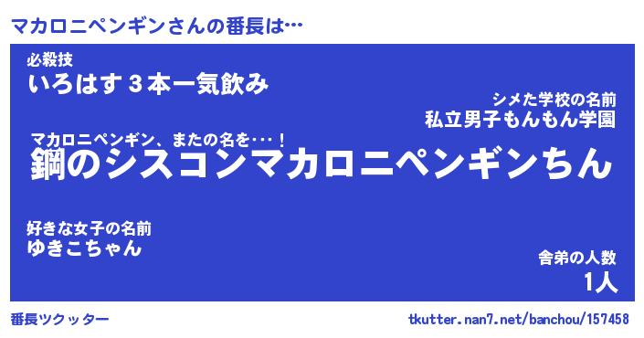 | 料理風あだ名 | 『ネギたっぷりマカロニペンギンの南蛮漬け』 |