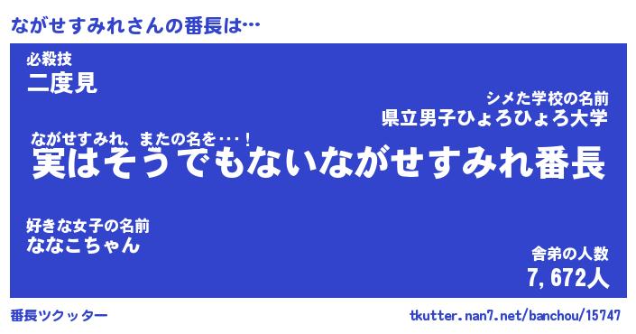 | 伝説のあだ名 | 『封印されしスナイパーながせすみれ』 |