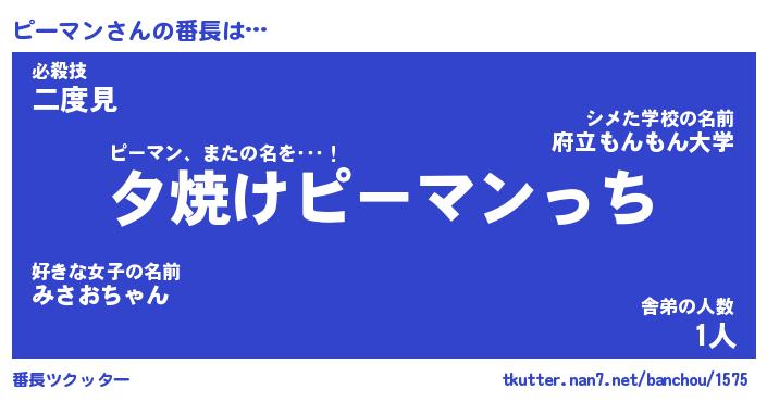 | ヒーロー風カッコイイあだ名 | 『スーパーピーマン』『炎刃騎士ピー』 |