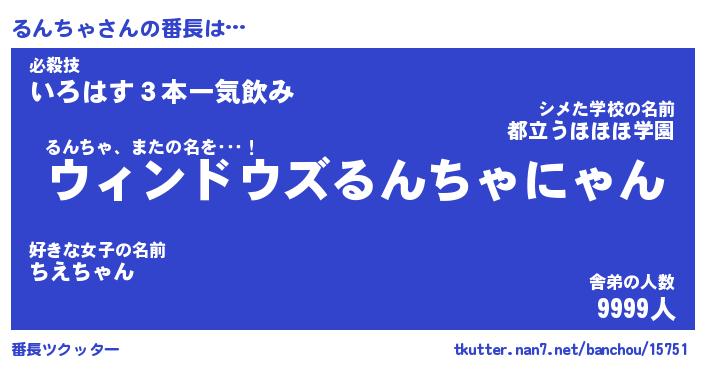 | 意味不明あだ名 | 『ペロリンるんちゃ』『永久保存るんちゃ』 |