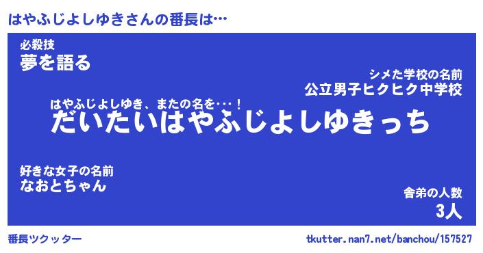 | 肩書あだ名 | 『はやふじよしゆき店長』 |