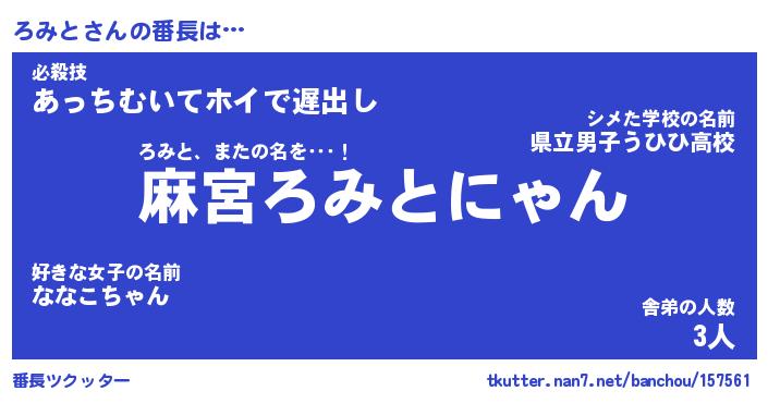 | 意味不明あだ名 | 『ペロリンろみと』『ろみとフォーエバー』 |
