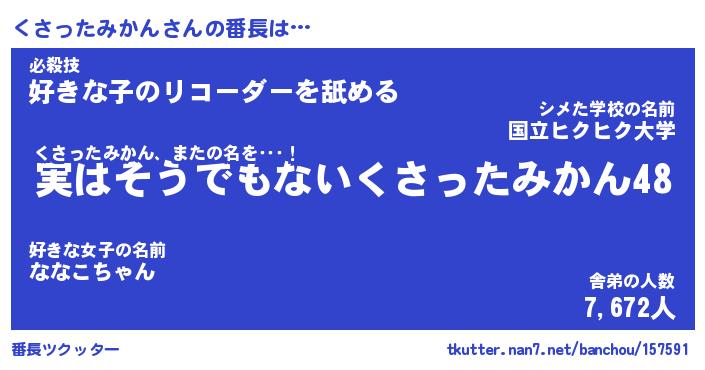 | 伝説のあだ名 | 『封印されしスナイパーくさったみかん』 |