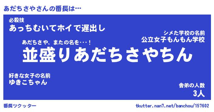 | ポケモン風あだ名 | 『アダチュウ』『アダチダネ』 |
