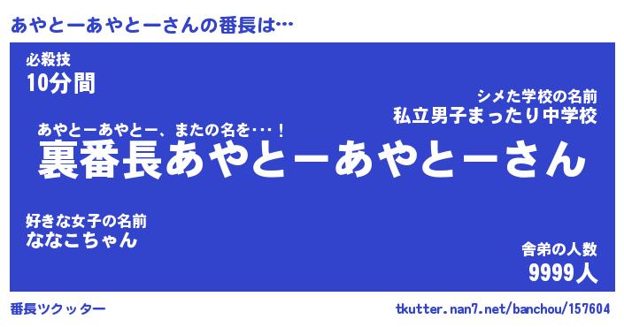 | 男性向けラノベタイトル風あだ名 | 『アヤトーアヤトーアートオンライン』 |