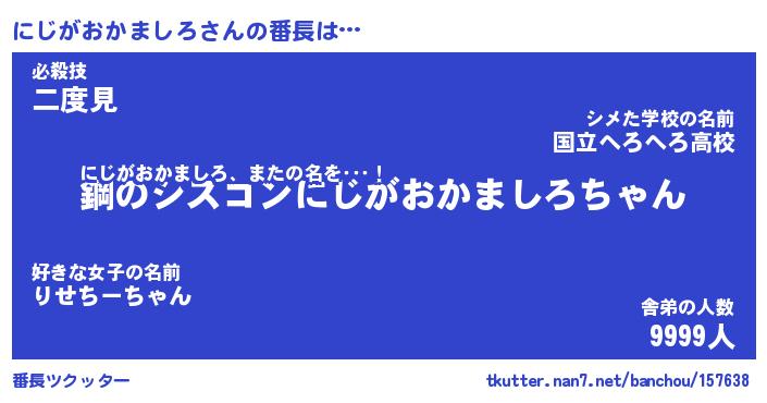 | 伝説のあだ名 | 『封印されしスナイパーにじがおかましろ』 |