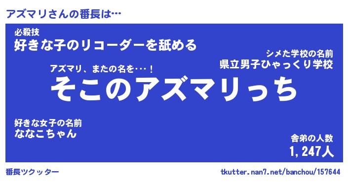 | ポケモン風あだ名 | 『アズチュウ』『アズマダネ』 |