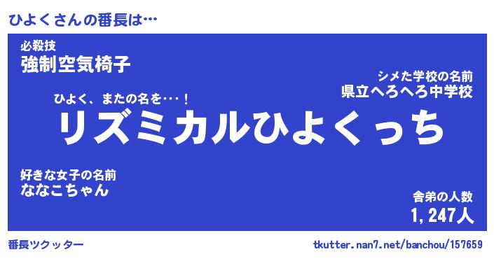 | ヒーロー風カッコイイあだ名 | 『スーパーヒヨク』『ウルトラひよくマン』 |