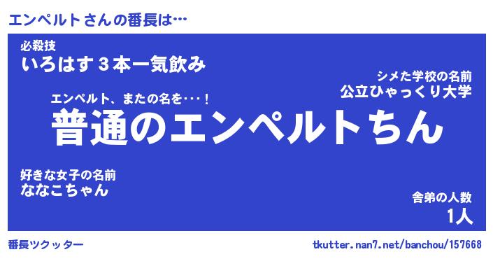 | ファンタジー風あだ名 | 『エンフェル』『エターナルエンペルトー』 |