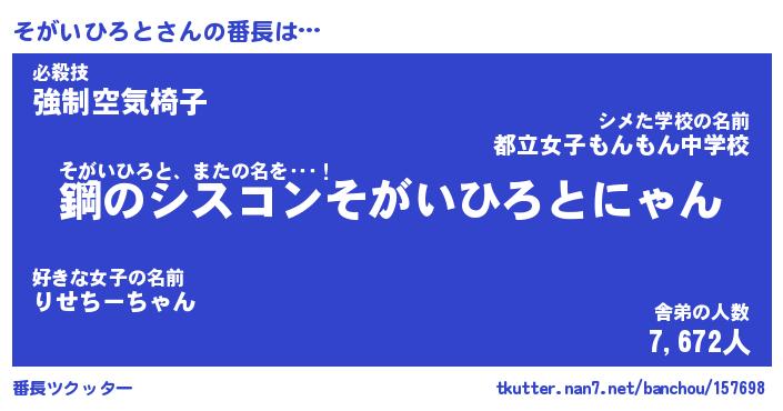 | ヒーロー風カッコイイあだ名 | 『スーパーソガイヒロト』『炎刃騎士ソガ』 |